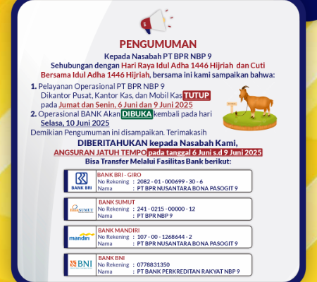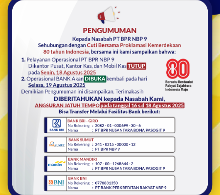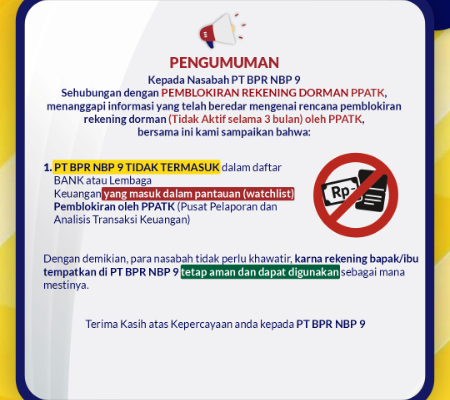 Selamat datang di PT BPR NBP 9, solusi finansial untuk masa depan yang lebih cerah.